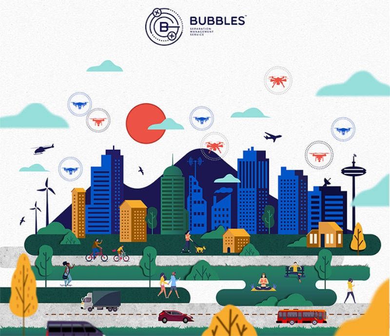 One of the main objectives of Bubbles is the generation of a new advanced service for the management of aircraft separation in U-Space, aimed at complex operations in areas with heavy traffic. This service will define "safety bubbles" around the UAS and develop procedures to prevent those bubbles from touching each other.