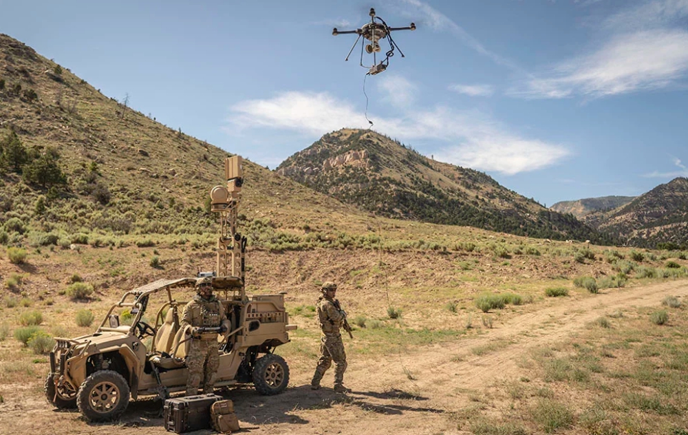 Tethered drones connect to a base station or vehicle by microfilament wire, which provides both continuous power and secure communications. For certain applications, a tethered drone offers advantages over a free-flying UAS, enabling sustained operations on longer missions and persistent situational awareness so users can perform intelligence, surveillance, and reconnaissance (ISR) functions.