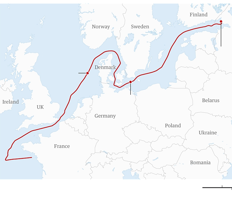 The tanker was sailing from the Russian oil terminal in Primorsk near St Petersburg, carrying 750,000 barrels of crude oil, to Vadinar in India, but was intercepted by a French naval vessel on Sunday and diverted towards Saint-Nazaire in western France while inquiries continue.
