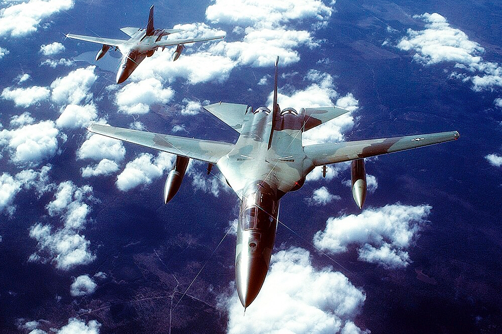 Top Photo: An F-111 flying over the North Sea in 1989