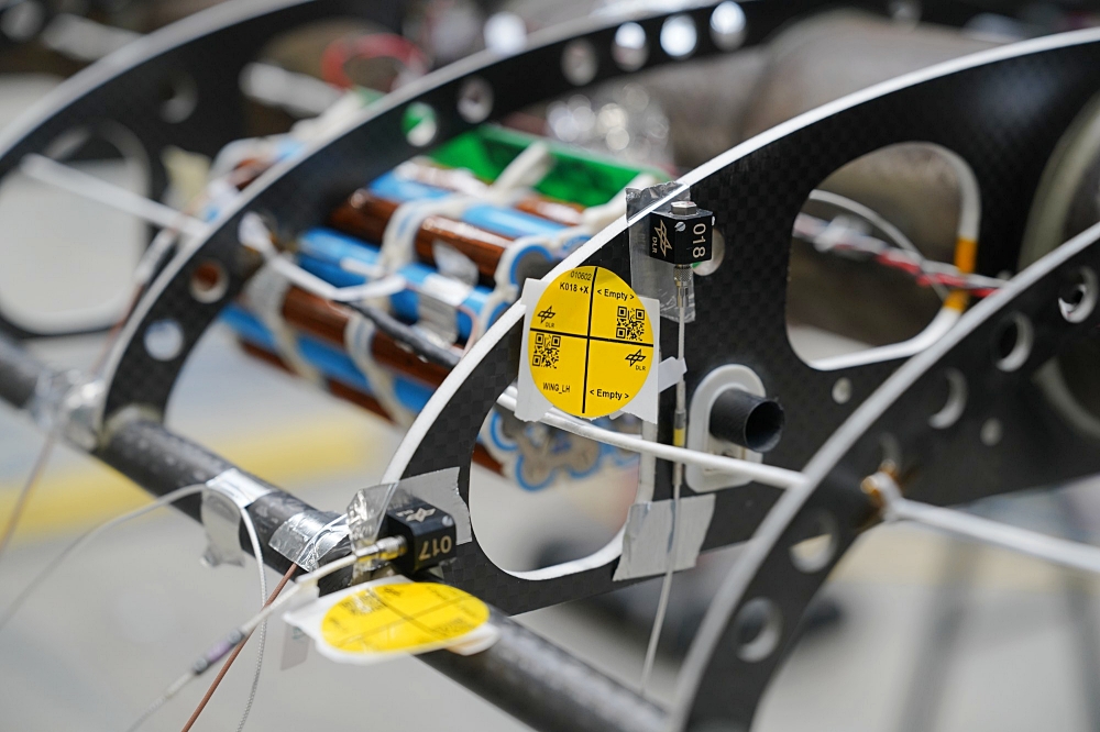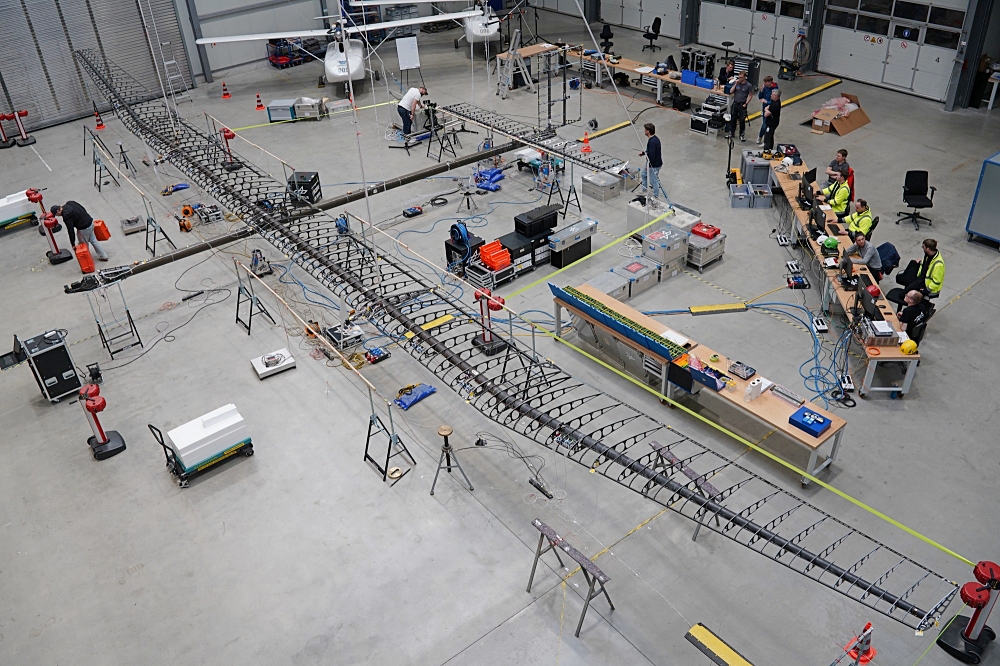 During the GVT, numerous sensors were used to record the dynamic properties of the platform, which was fitted with electromechanical vibrators so that its vibration characteristics could be identified. A particular challenge of the GVT on HAP-alpha was its very lightweight and therefore very flexible design.