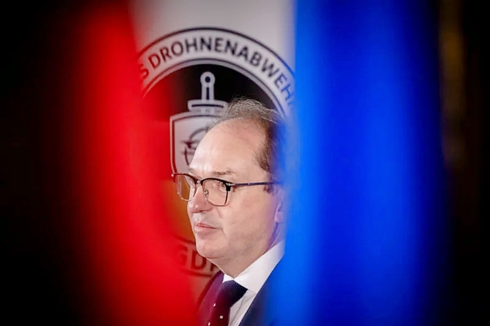 Top Photo: Alexander Dobrindt, German Minister of the Interior, points to the corresponding sign at the opening of the Joint Drone Defense Center (GDAZ) of the German federal and state governments at Federal Police Directorate 11 in Berlin - Christoph Soeder/dpa