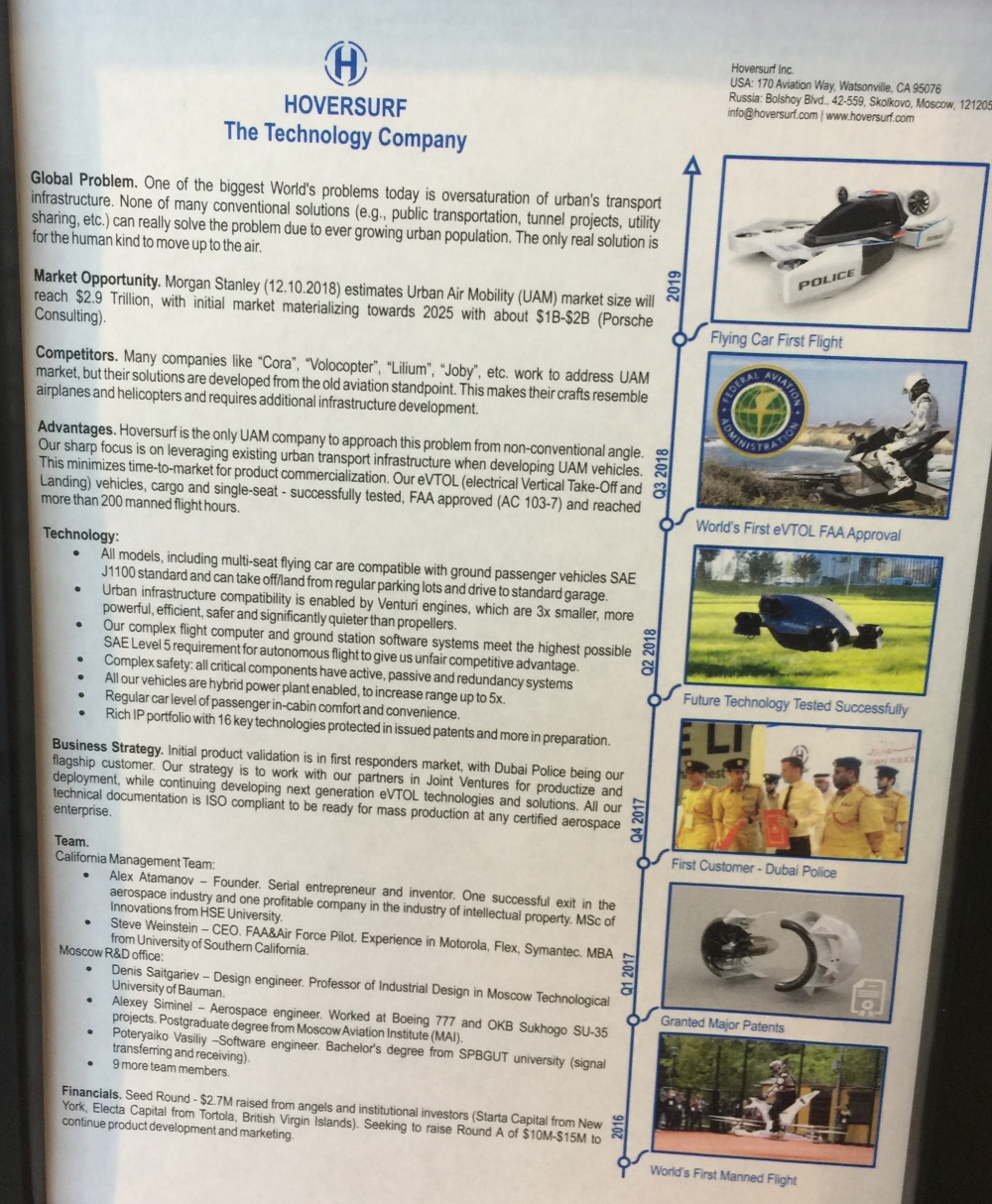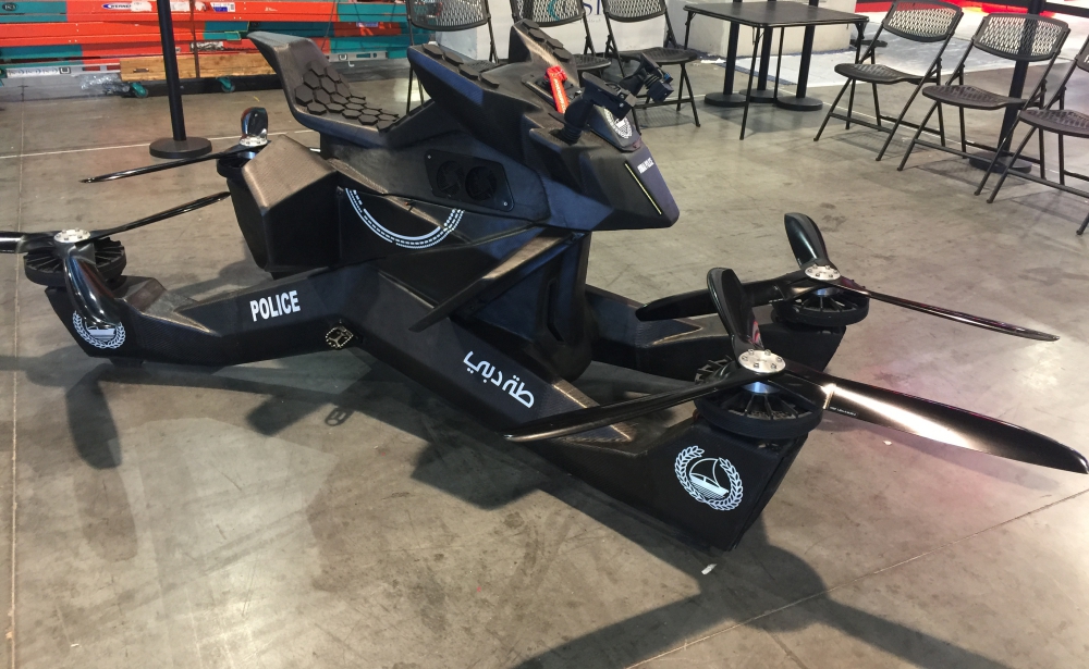 Dubai Police took delivery of its first Hoverbike in November 2018 though it is as yet unclear where and when manufacturing might start. The new version appears to be using simple ducted-fan engines (rather than the company's patented Venturi engine) which are clearly safer than the massive knee-chopping exposed blades of the original.