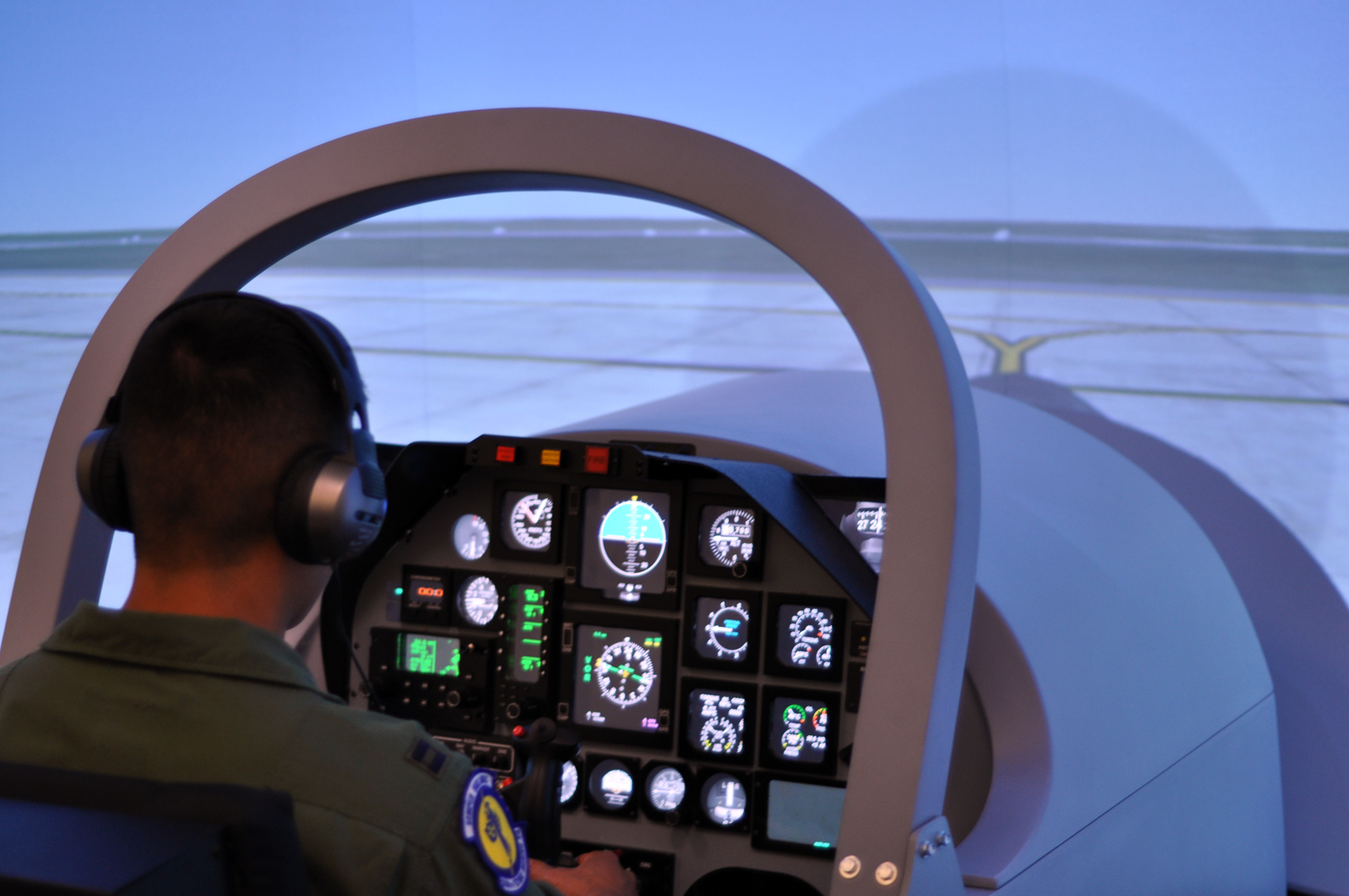 "These simulators use high-end desktop computers with powerful graphics cards to display the T-6 cockpit and instrument displays," said Lt. Col. Scott Cerone, 558th Flying Training Squadron commander. "Real-world surroundings are projected from three high-powered projectors to give the pilots a 180-degree view of the world outside their cockpits."