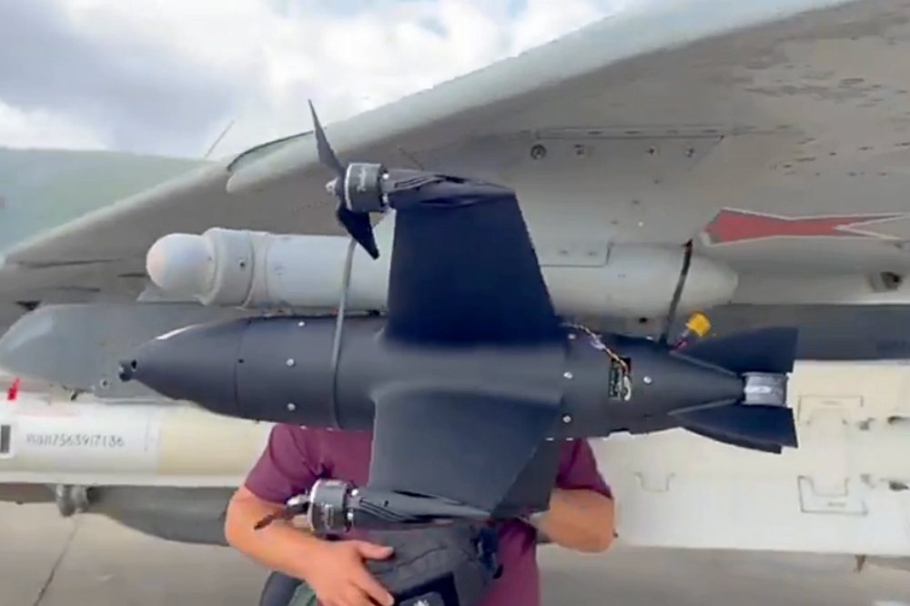 On closer inspection, the quadcopter drone is lashed to the fighter using zip ties and, even if that weren’t the case, the practicality of the solution is extremely questionable — to say the least.