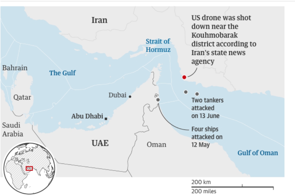 A US military drone has been shot down by an Iranian missile near to the country's airspace. Unnamed US officials quoted by Reuters and AP news agencies said the intelligence drone was downed in international airspace over the Strait of Hormuz, south of Iran.