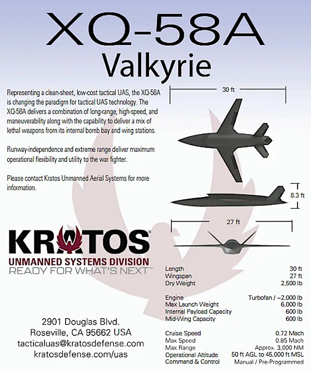 Kratos has also said in the past that its goal is to eventually drive down Valkyrie’s unit cost to around $2 million. However, last year, the company told TWZ that the price tag for a single XQ-58 was still between $4 and $6 million, depending on the exact configuration. In general, Kratos has historically focused on lower-cost designs and ones that can be manufactured relatively quickly.