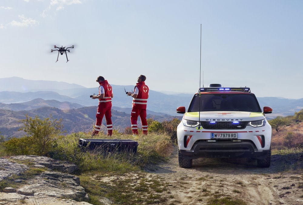 The bespoke Discovery will provide eyes in the sky with a special drone and go-anywhere wheels on the ground, as an emergency mobile command centre with the Austrian Red Cross disaster response teams.