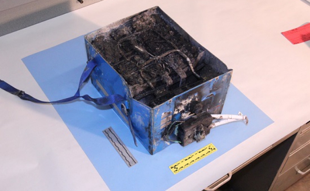 “The global lithium-ion battery market was estimated at about $22 billion in 2016, and estimates are it will be about $78 billion by 2025,” he explained. “And the global drone industry is estimated to be about $12 billion by 2021. We’ll probably see some exploration into different [battery] chemistries in different applications, but lithium-ion will be the workhorse technology for the foreseeable future. That’s why this work [around standards] is so important.”Photo: An NTSB photo of the burned auxiliary power unit battery from the JAL Boeing 787 that caught fire in January 2013 at Logan International Airport, Boston. Similar incidents affected other 787 aircraft around the same time.