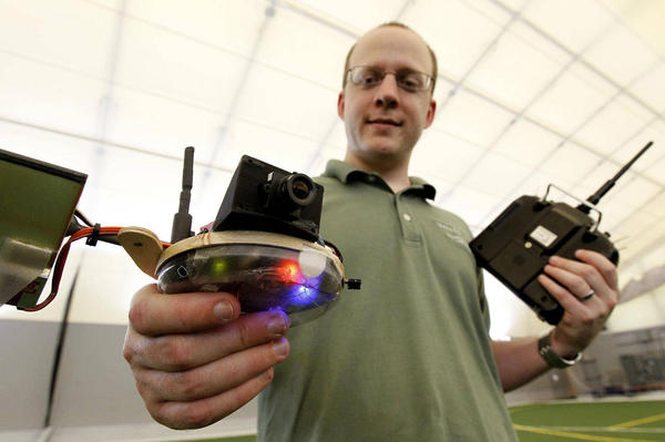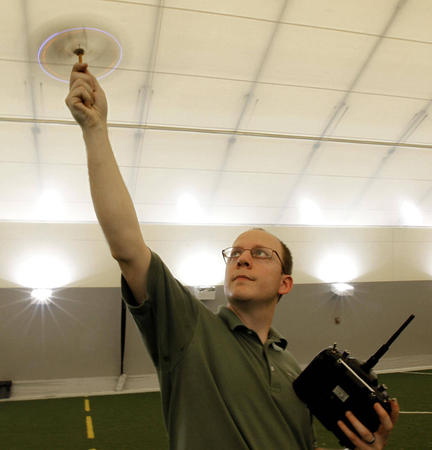 By remote control, the flight was steady. With the easier-to-use app, it twirled around a bit, not unlike a maple seed. That, Stoneking said, will be fixed in the future. The idea isn't brand new. Students at the University of Maryland built a smaller maple seed-inspired flyer a few years ago. Bill Borgia, director of the Lockheed Martin lab, said it could be useful for the military and police — as well as his lab's work on other devices.