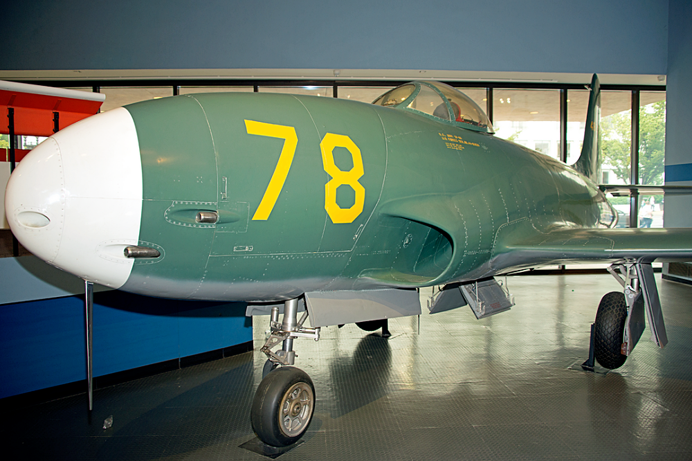It was the first operational jet fighter to have its engine buried in the fuselage, a format previously used in the pioneering German Heinkel He 178 V1 of 1939, and the later British Gloster E.28/39 demonstrator of 1941. Other early jets generally had two engines because of their limited power, these being mounted in external nacelles for easier maintenance. With the advent of more powerful British jet engines, a single fuselage-mounted engine was more effective, and this configuration was used by nearly all subsequent fighter aircraft.
