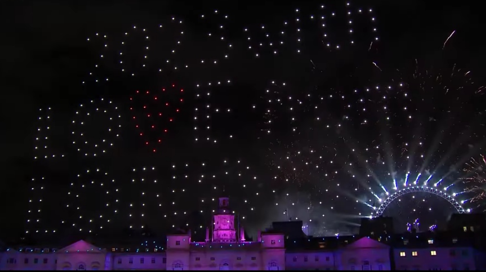 At the beginning of the display, drones spelled out the message "2023 with love from London".