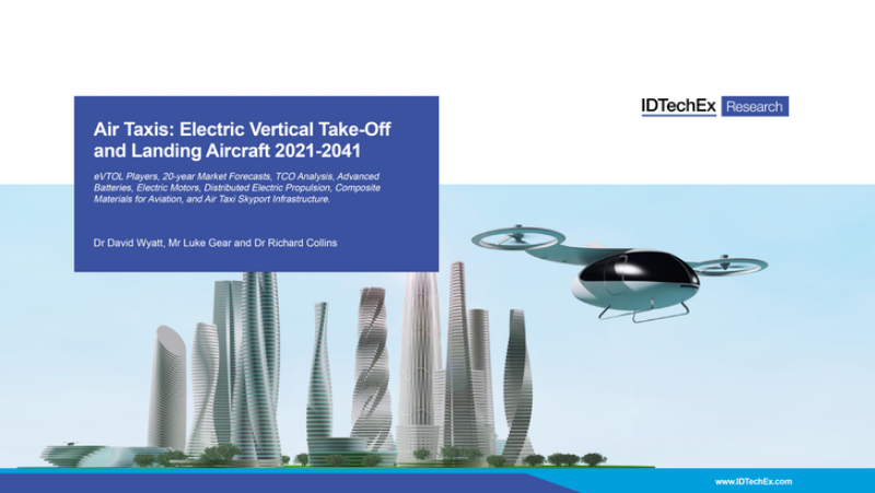 IDTechEx's new report "Air Taxis: Electric Vertical Take-Off and Landing Aircraft 2021-2041" is independent research into electric vertical take-off and landing (eVTOL) aircraft for passenger transport reflects the reality of the eVTOL market at this early stage of its development.