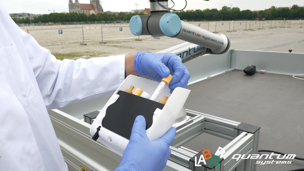 Last week Quantum-Systems GmbH and laboratory Becker & Kollegen tested the transport of samples, by drone, from the mobile corona test station on the Theresienwiese to the Munich laboratory.