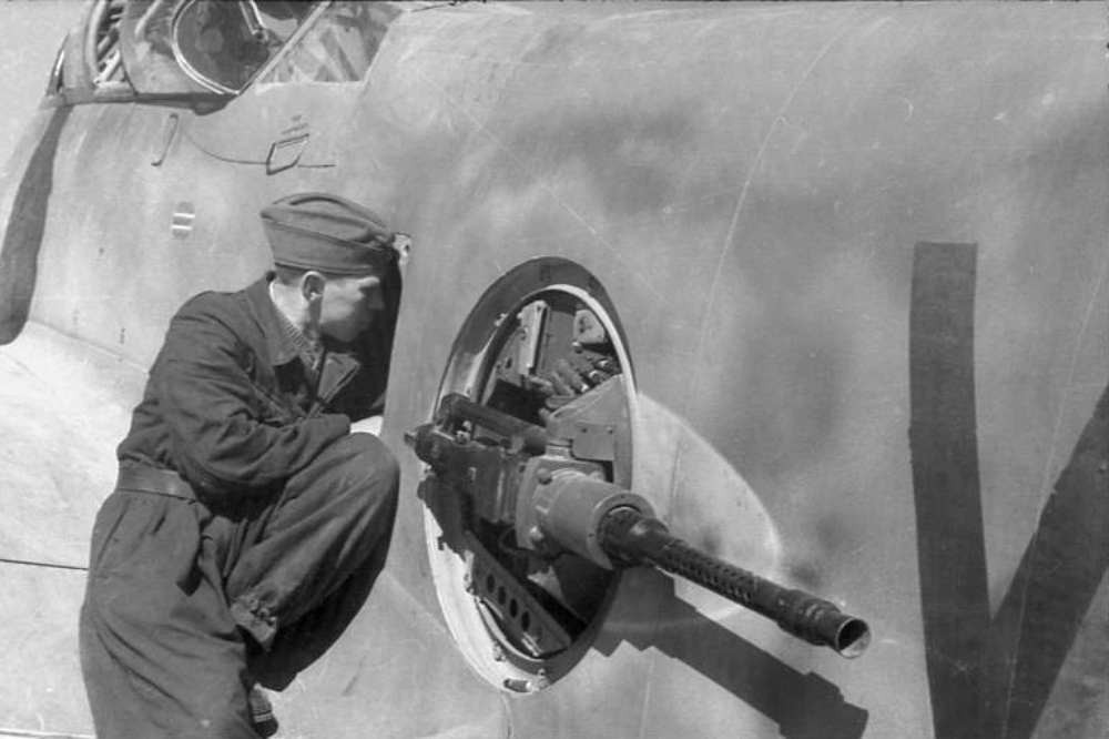 The rear of the cockpit canopy's lower side glazing panels were bulged out to allow the gunner to see in almost any rearward-facing direction. The guns were electrically fired, and an electrical contact breaker acted as a form of "interrupter" as used on many forms of multi-engined, turret-armed WW II aircraft, preventing the gunner from shooting off the Me 210's tailplane.
