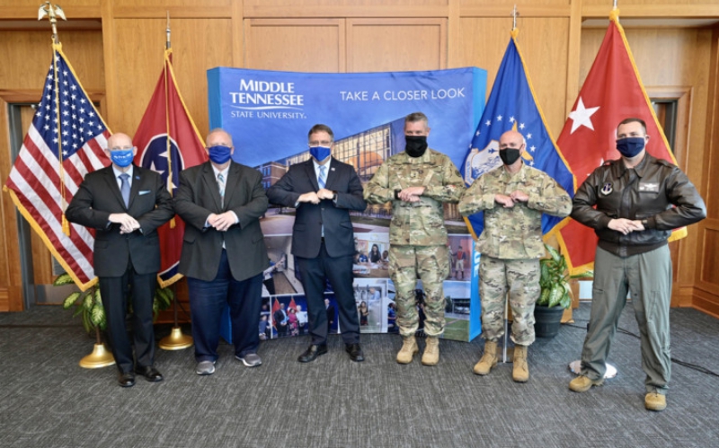 The memorandum of understanding signed by MTSU Provost Mark Byrnes, Tennessee Adjutant General Maj. Gen. Jeff Holmes and Wing Commander Col. Todd A. Wiles also calls upon both entities to collaborative training and research initiatives.