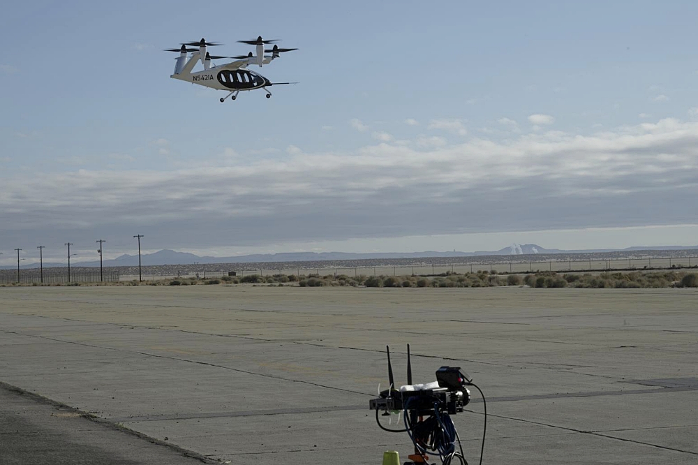 Joby flew its air taxi demonstrator over NASA’s ground sensor array near the agency’s Armstrong Flight Research Center in Edwards, California producing air flow data. The Joby aircraft has six rotors that allow for vertical takeoffs and landings, and tilt to provide lift in flight. Researchers focused on the air pushed by the propellers, which rolls into turbulent, circular patterns of wind.