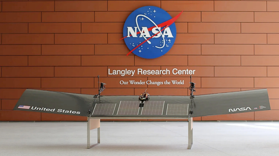 At its full size, the MERF unfolds to be about as long as a small school bus. Langley engineers have been testing a half-scale prototype, sending it soaring across a field on the Virgina campus to study the design’s aerodynamics and the robot’s lightweight materials, which are critical to flying in Mars’ thin atmosphere.