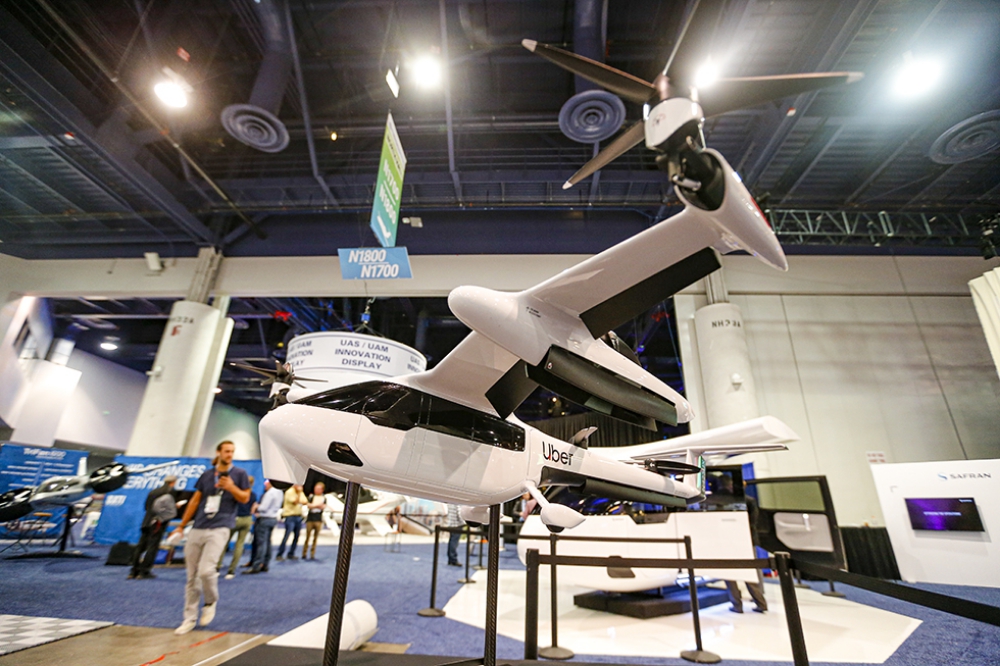 Companies on hand include Uber Elevate (above), which has partnered with several air vehicle manufacturers to develop electric vertical takeoff and landing (eVTOL) aircraft capable of carrying four or five passengers.