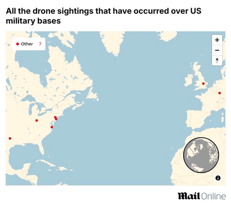 But despite the wave of concern, the Pentagon has denied that a foreign country was behind the mysterious drones, even as they have been repeatedly spotted over sensitive US military sites.