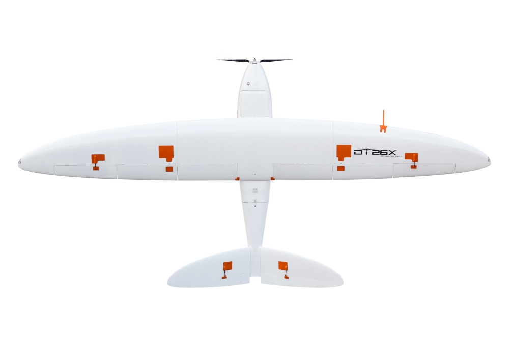The Delair DT26X Surveillance can carry out remote or night surveillance missions, thanks to its 10 times optical zoom and infrared sensor. Equipped with an on-board stabilization system, it is also equipped with a human detection system (effective from more than 1.5 km away), day and night. The aircraft has an endurance of up to 135 minutes and a cruise speed of 57 km/h. The fixed-wing aircraft has a wingspan of 3.3 metres and weights 15 kg, including payload. It is catapult-launched and belly-landed and has an effective range of 30 km.