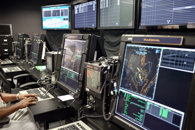 The Navy doesn’t really want to elaborate, beyond saying that “precision GPS” helps the aircraft understand where its aircraft carrier mothership is. The Navy is quick to remind reporters, however, that the X-47B is just a demonstrator, unarmed and carrying no sensors yet. It’s at Pax River, home to catapults and trapping wires that simulate what’s necessary for an aircraft launch, to test the proposition that the Navy really can launch an unmanned aircraft from a carrier and bring it safely back. The aircraft took its first flight from Pax River on Sunday, a 35-minute flight over the Chesapeake Bay at 7,500 feet and a 180-knot clip.