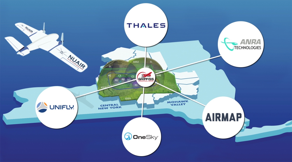 Northeast UAS Airspace Integration Research (NUAIR) and the New York UAS Test Site at Griffiss International Airport, have successfully deployed and integrated five unmanned aircraft systems (UAS) service suppliers into the New York UAS Corridor: AirMap, ANRA, AGI/OneSky, Thales and Unifly.