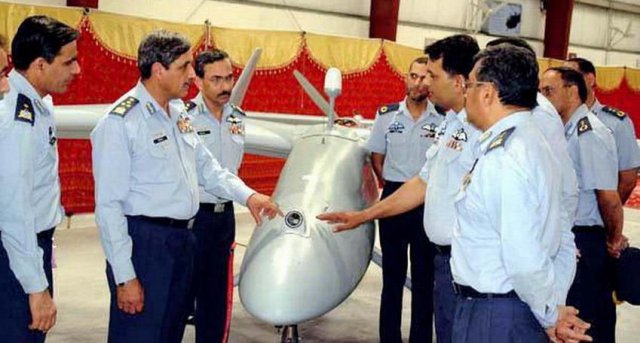 Photo: Air Chief Marshal Tanvir Mahmood Ahmed, Chief of the Air Staff Pakistan Air Force inspecting the indigenously manufactured Falco Unmanned Aerial Vehicle at the induction ceremony on April 20, 2008. [Picture courtesy: Directorate of Media Affair, PAF]