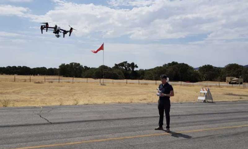Photo: Singapore Air Force Maj. Wee Leong Wee, a 2018 NPS graduate, conducts a field test with a drone used to detect foreign object debris (FOD) on runways.