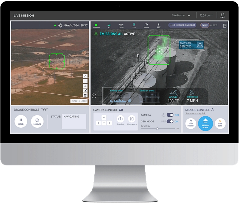 The fully autonomous drones capture Optical Gas Imaging (OGI) video on scheduled missions, while Percepto’s AI analyzes the footage to identify and flag potential methane emissions. Verified alerts are sent to stakeholders with precise geolocation, timestamps, environmental data, and dwell time—enabling faster, more focused response efforts.