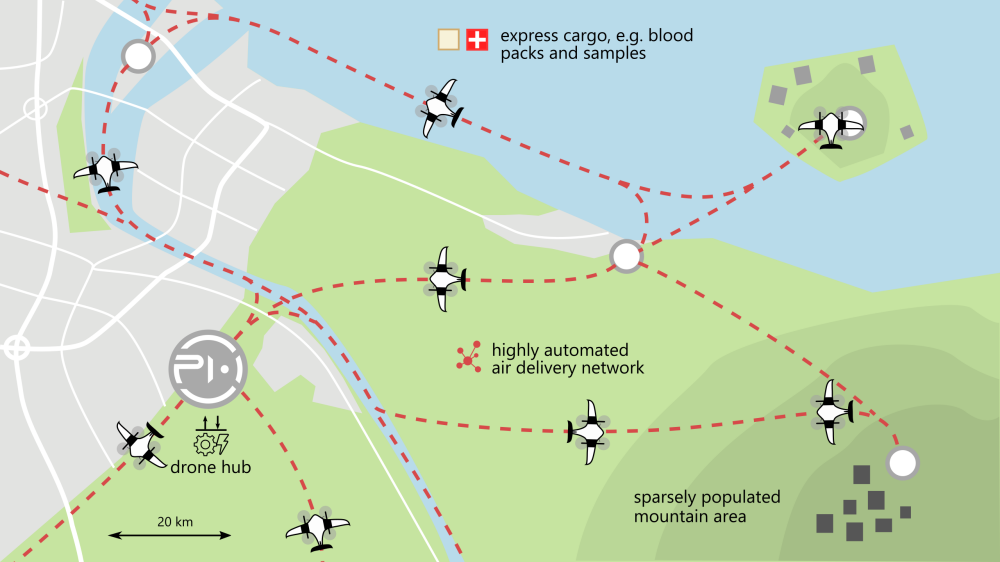 Upon selection, Phoenix-Wings prepared its “Manta Ray” system, a fully electric heavy lift and high-volume cargo drone. Its specially designed shape allows for an efficient transport of a modular 30-liter cargo box containing up to 10kg of cargo. Delivery range is up to 120km.