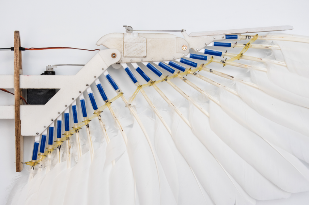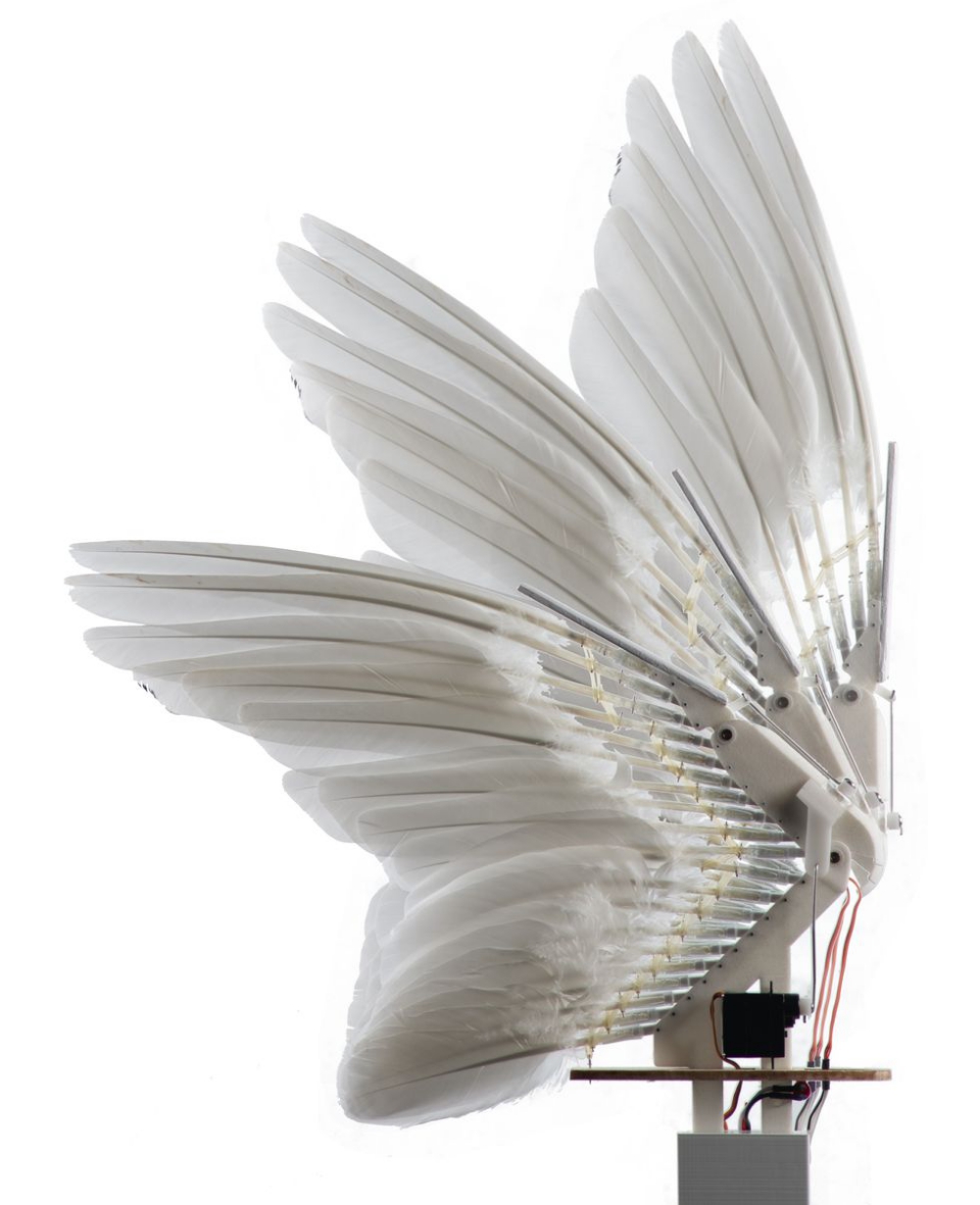 Beginning around 2014, Lentink and his lab began studying pigeon biology to understand how their wings could change shape so effortlessly. The team looked at real pigeon cadavers and realized that by moving a bird's wrists and fingers, the feathers would automatically fall into place.