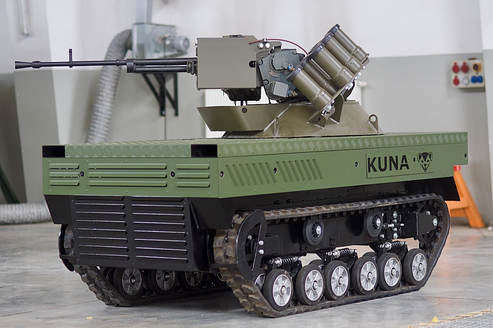 The KUNA is equipped with LIDAR sensors, cameras, and other detection systems that allow it to navigate obstacles independently, improving its ability to operate in unpredictable or contested terrain. Its tracked configuration provides high mobility, allowing it to travel across uneven, sandy, muddy, or rocky ground where wheeled vehicles may struggle.