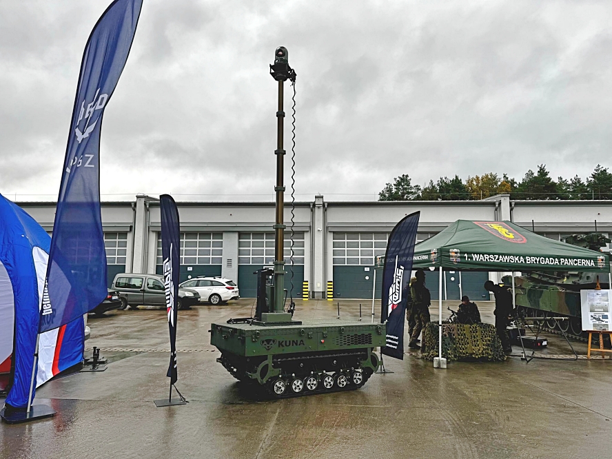 Among the systems shown, the reconnaissance variant of the KUNA Unmanned Ground Weapon System drew attention. The company said the platform is equipped with advanced optoelectronic and communications systems.