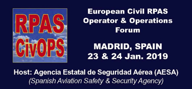 The upcoming 7th annual RPAS CivOps conference will take place on 23 & 24 January 2019 in Madrid, Spain, where it is being hosted by the (AESA), the Spanish national aviation safety & security agency.