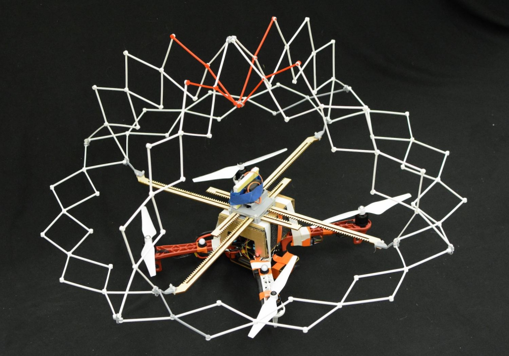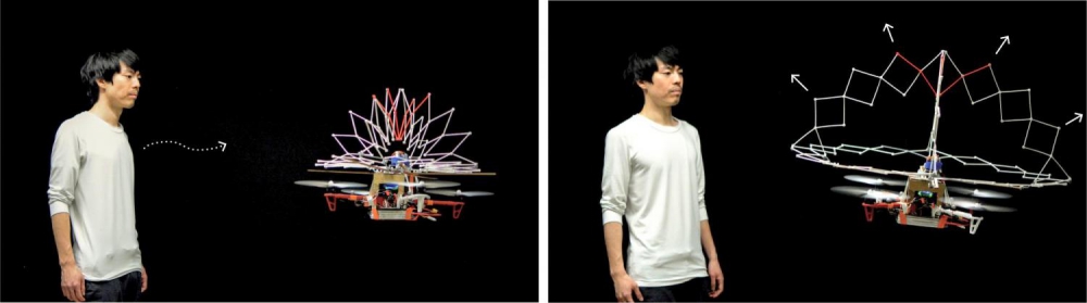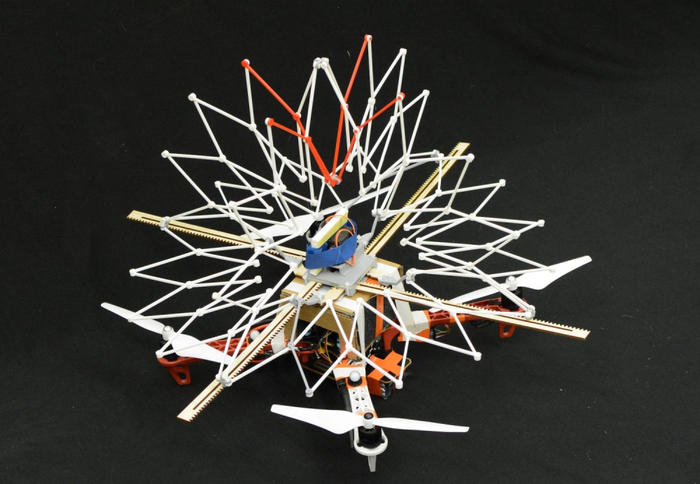 Under normal circumstances, the shield collapses and stays out of the way. But when danger is close, that’s when PufferBot puffs up, extending those hoops over its four, spinning rotors to keep them away from people and obstacles.
