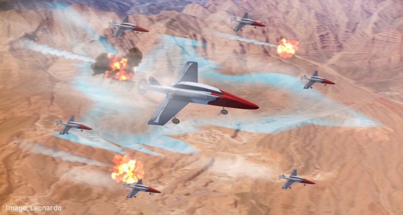 During the demo, a number of small, remotely-piloted aircraft equipped with Leonardo’s powerful electronic warfare (EW) jamming technology were used to confuse and overwhelm trial radars simulating enemy air defense systems.