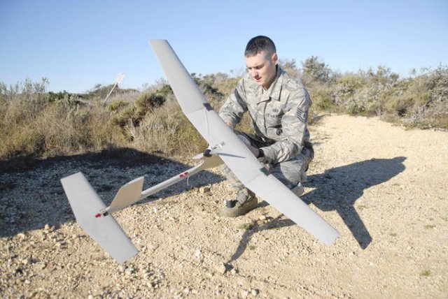 RQ-11 Raven equipped with high-powered video cameras will fly around the craggy launch site northwest of Santa Barbara, scouring the ground below to ensure that the area is clear for blastoff.