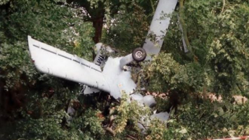 After that it "glided over the road and crashed into a tree, approximately 900m beyond" the landing point.