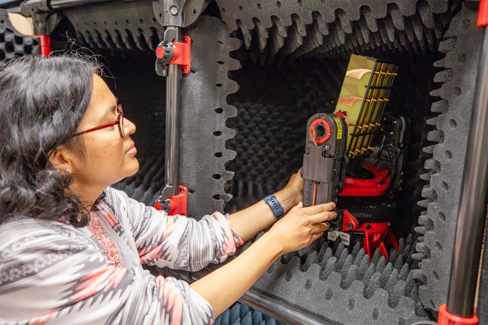 Mahbub and her team of researchers are developing wireless technology to transfer electromagnetic waves to and from far distances. Called far-field wireless power transfer, or power beaming, the technology would enable UAVs, or drones, for example, to recharge without having to land at power stations. The technology would mark a significant advance in wireless recharging, which currently is limited to transferring power via low-frequency electromagnetic waves between very short distances, such as to a cellphone from a nearby charger.