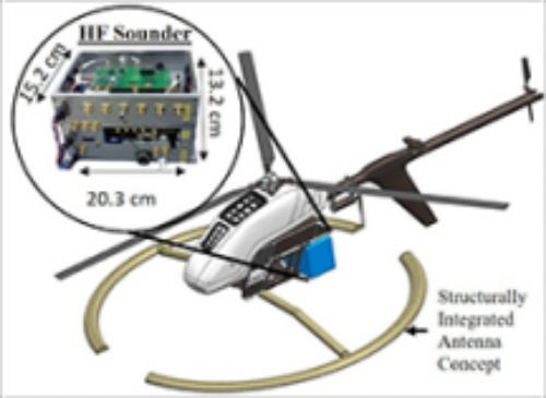 “We’ll add the radar, which is the driving electronics, but it’s the antenna that we’re going to try to integrate into the landing gear — and particularly for the low-frequency radar,” Arnold said. “So, we’ll have both a low-frequency and a high-frequency radar. The biggest challenge with getting that to operate from the UAS is the antenna size. It’s hard to even get an antenna to operate from a large manned aircraft at the frequencies that we’re looking at, which is about 30 megahertz. So, we’re going to have to use novel antenna design concepts for electrically small antennas. And we’re also looking at replacing the landing gear and using the antenna integrated into a new landing gear concept to try to get this antenna onto the vehicle.”