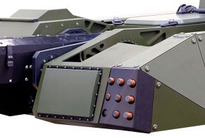the PM Effectors says, showing in real that the concept demonstrator has also been fitted with two Rheinmetall’s ROSY (Rapid Obscuring System) launchers fitted to the turret, each with nine multispectral smoke rounds. A machine gun can be fitted on the left of the main gun, to be used as self-defence weapon. The Skyranger 30 features a central armoured structure, which at distance is fitted with add-on armour, basic protection being at Level 2, which can be increased upon request of the customer to Level 4 according to STANAG 4569, which obviously has an impact on weight. A hatch in the hull ceiling allows the vehicle commander to have a direct view of the battlefield. Protected at Level 4, it can also be used as an escape hatch in case of emergency.