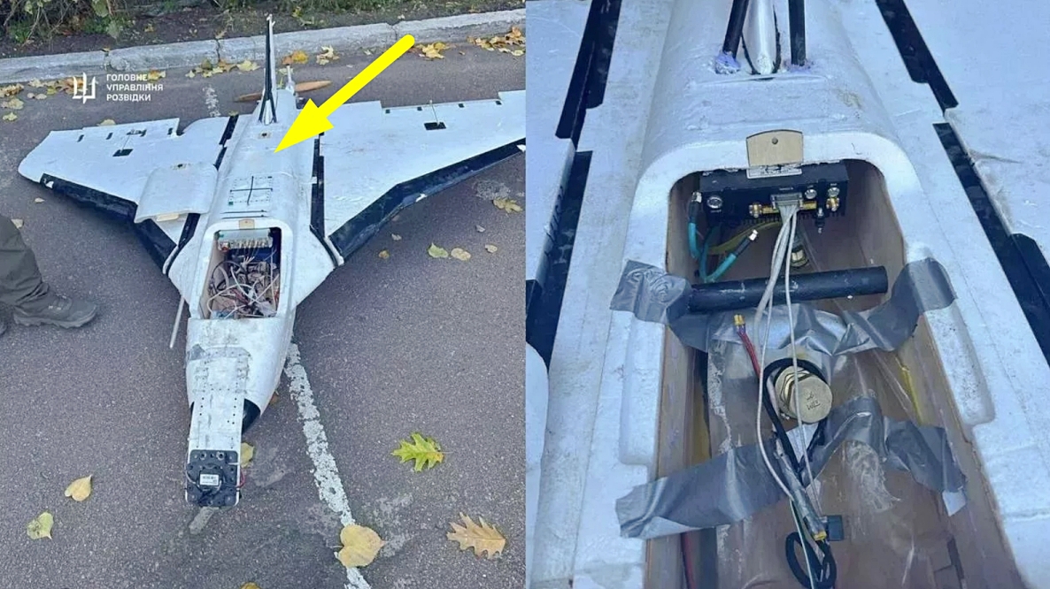 An additional flexible fuel tank in a Russian Gerbera drone that crashed in Poland on September 10, 2025. Photo credits: @MJMarszalkowskiSource: MILITARNYI;