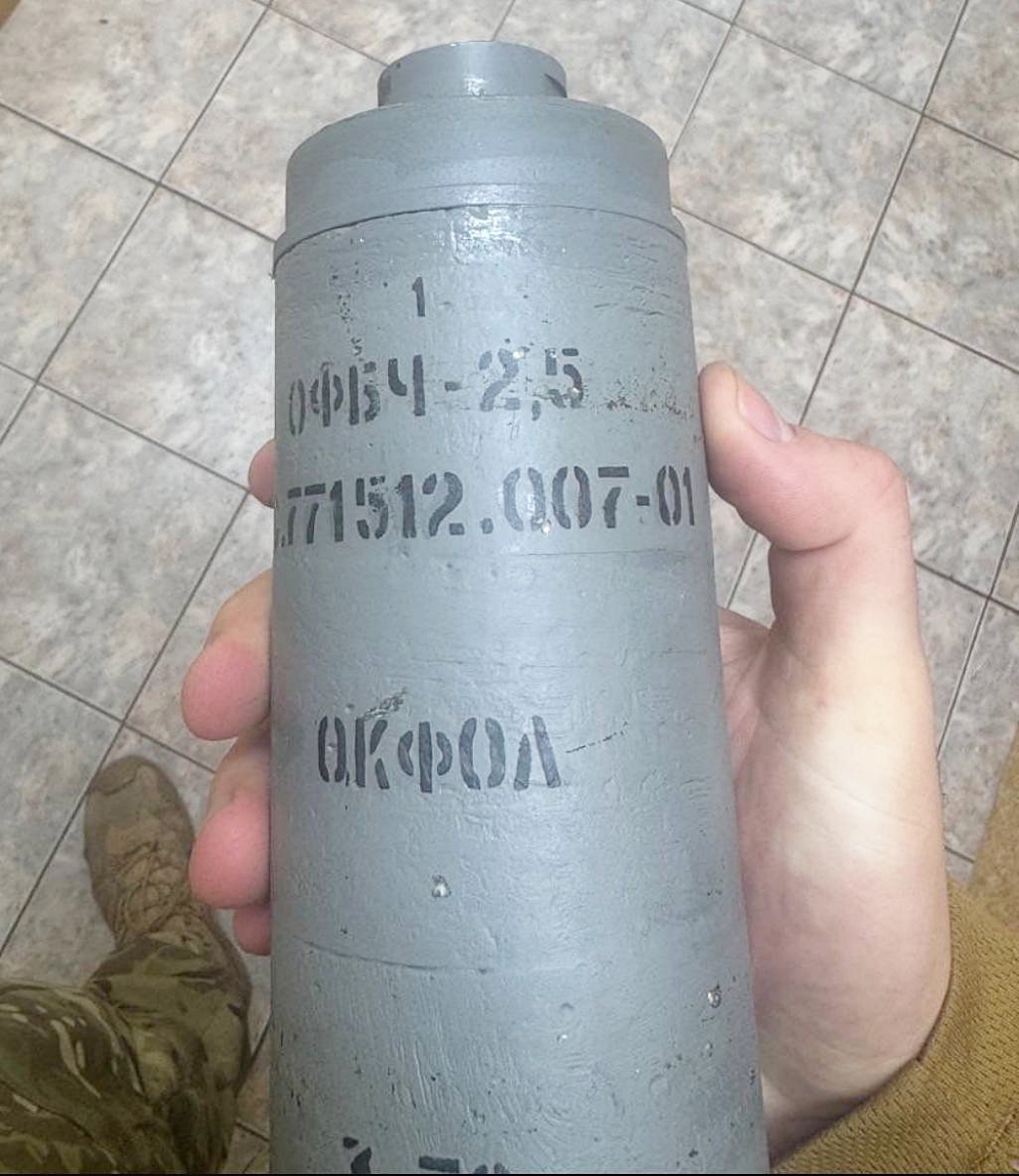 A newly released photo shows one such drone equipped with a Russian OFBCh-2.5 fragmentation-explosive warhead, filled with OKFOL, a high-explosive compound.