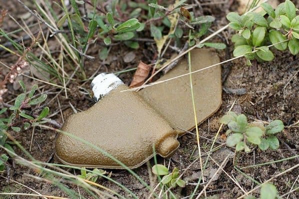 A person can be injured by a mine explosion by damaging the lower part of the leg. The explosion occurs when a person steps on the mine. The total weight of the mine is 75 g, of which 37 g is the explosive itself.