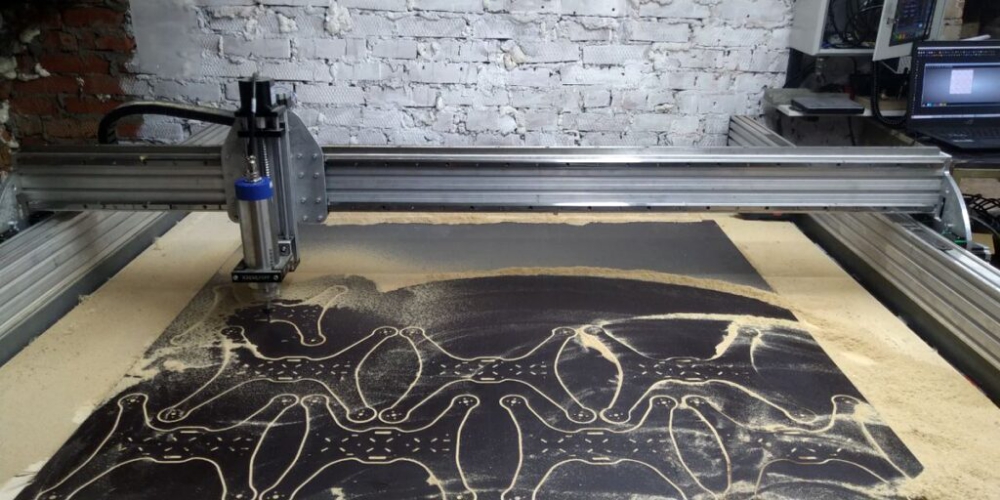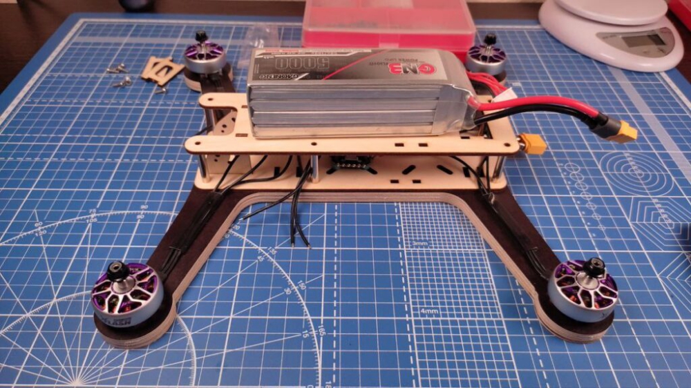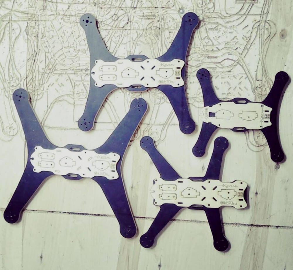 A computer-controlled router is used to cut the drone frames out of 9mm thick plywood, with a laser cutter cutting parts out of thinner plywood.