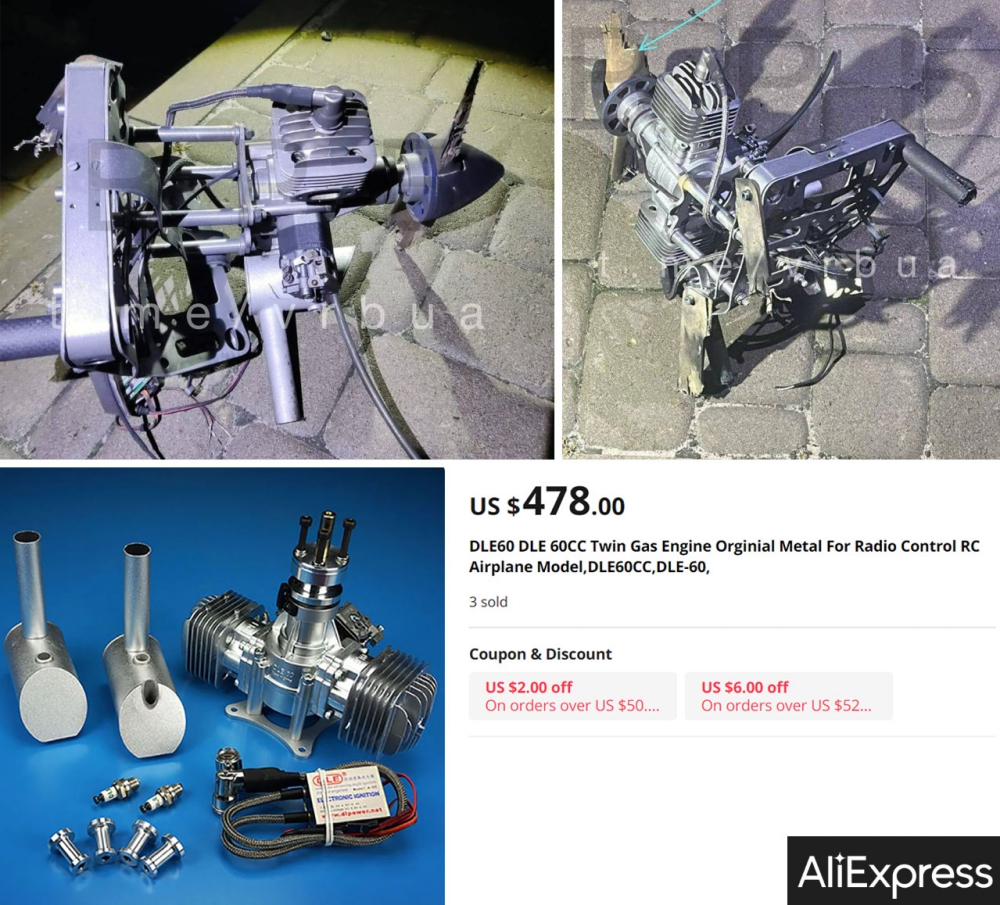 The UAV downed on October 22nd. was equipped with the DLE-60 engine. This component can be easily acquired via AliExpress, for example, at a price below $500 apiece.
