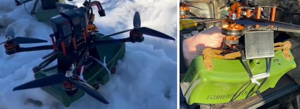 But the thing is, Russians have been using similar FPV-drones for a while now, and they also share their ideas in public. In particular, they look for ways to increase the anti-personnel capabilities of FPV-drones, too. One of the experiments was with the MON-50 anti-personnel mine. The ignition is provided by an electric fuze triggered by the drone operator.