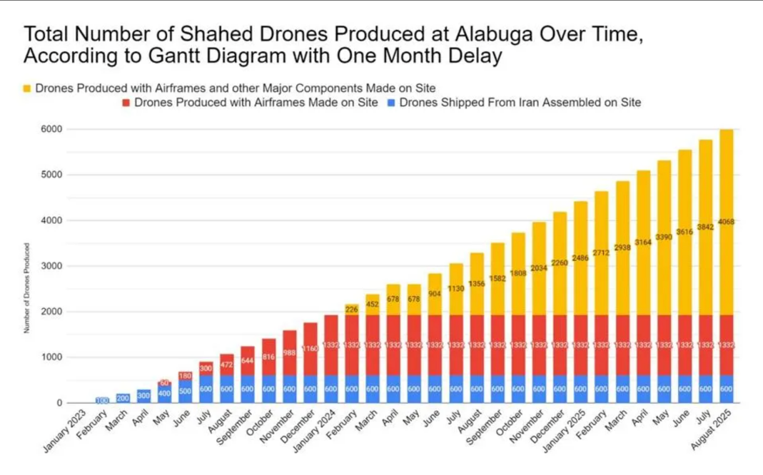 A firm called JSC Alabuga is identified as the producer and as of the November report, it was not found on public U.S. or allied sanctions lists. Analysts differ as to whether Russia can produce the licensed Shaheds at a cost of approximately $50,000 per copy as it claims but its capacity to increase local production of the drones was positively projected by the ISIS report.