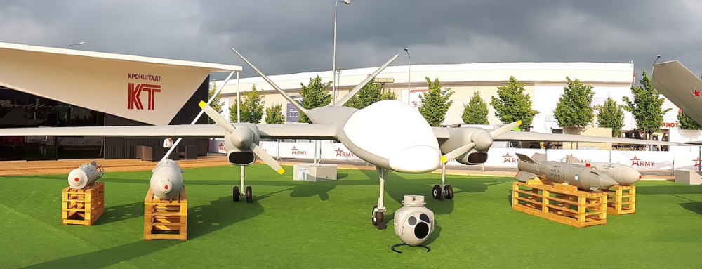 It also can carry heavier, harder-hitting bombs and missiles ordinarily reserved for manned warplanes. That supposedly includes 1,100-pound class RBK-500U cluster bomblet dispensers and destructive ODAB-500PMV fuel air explosives. The drone also benefits from a ground-mapping Synthetic Aperture Radar that can help generate terrain maps, as well locate ground-vehicle and artillery targets.